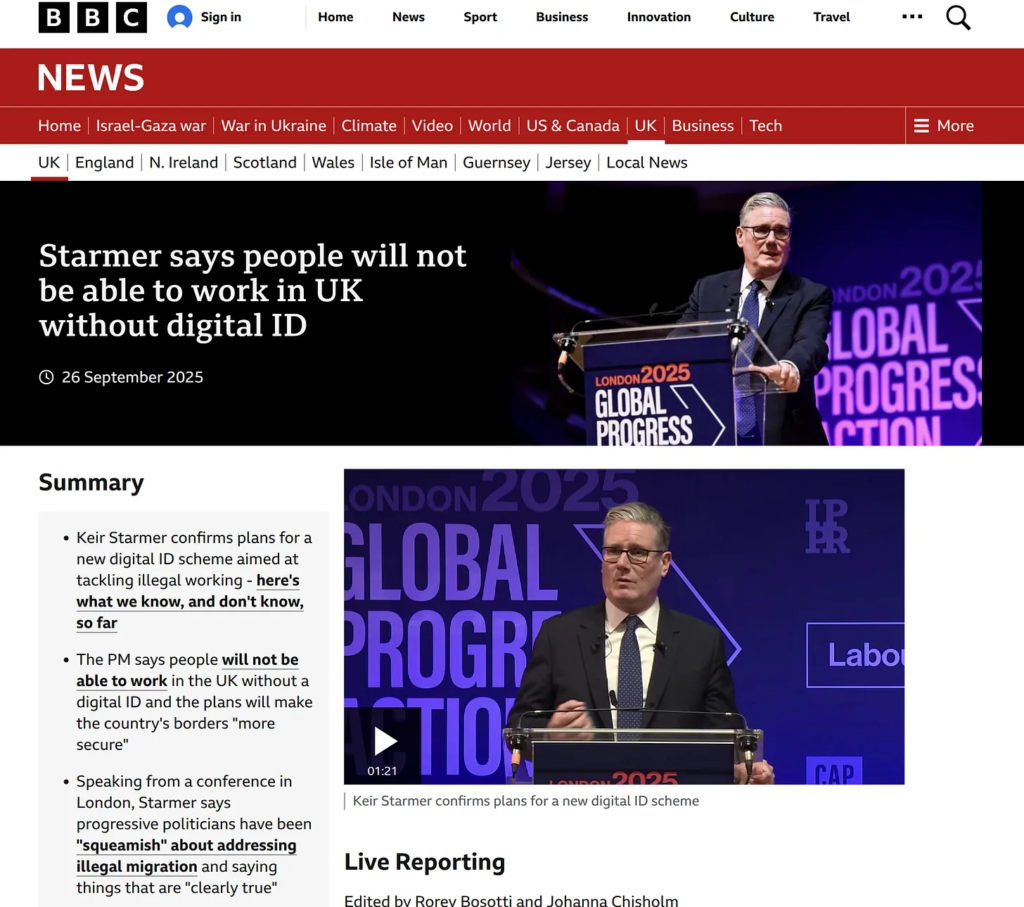 In September of 2025, Keir Starmer announced that Britain was going to enforce digital IDs, so much so that you cannot work in the UK without getting a digital ID.