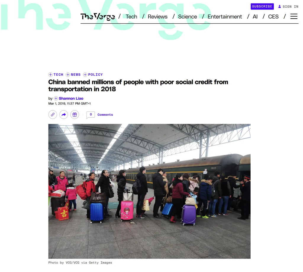 Well, in China, in 2018, 23 MILLION train and plane tickets were rejected because of “too low social credit scores.”